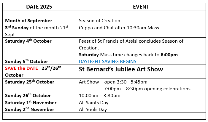 Just click on the title ‘St Bernard Parish Belmont’, at the top of the page to take you there.