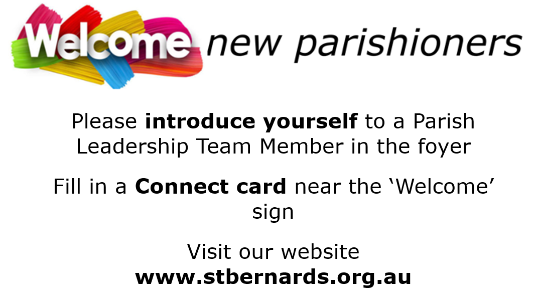 Would you like to register your contact details with the Parish? Even if you’re not new but you haven’t made contact or you need to update your details, please complete a CONNECT CARD here or one available in the foyer of the Church.