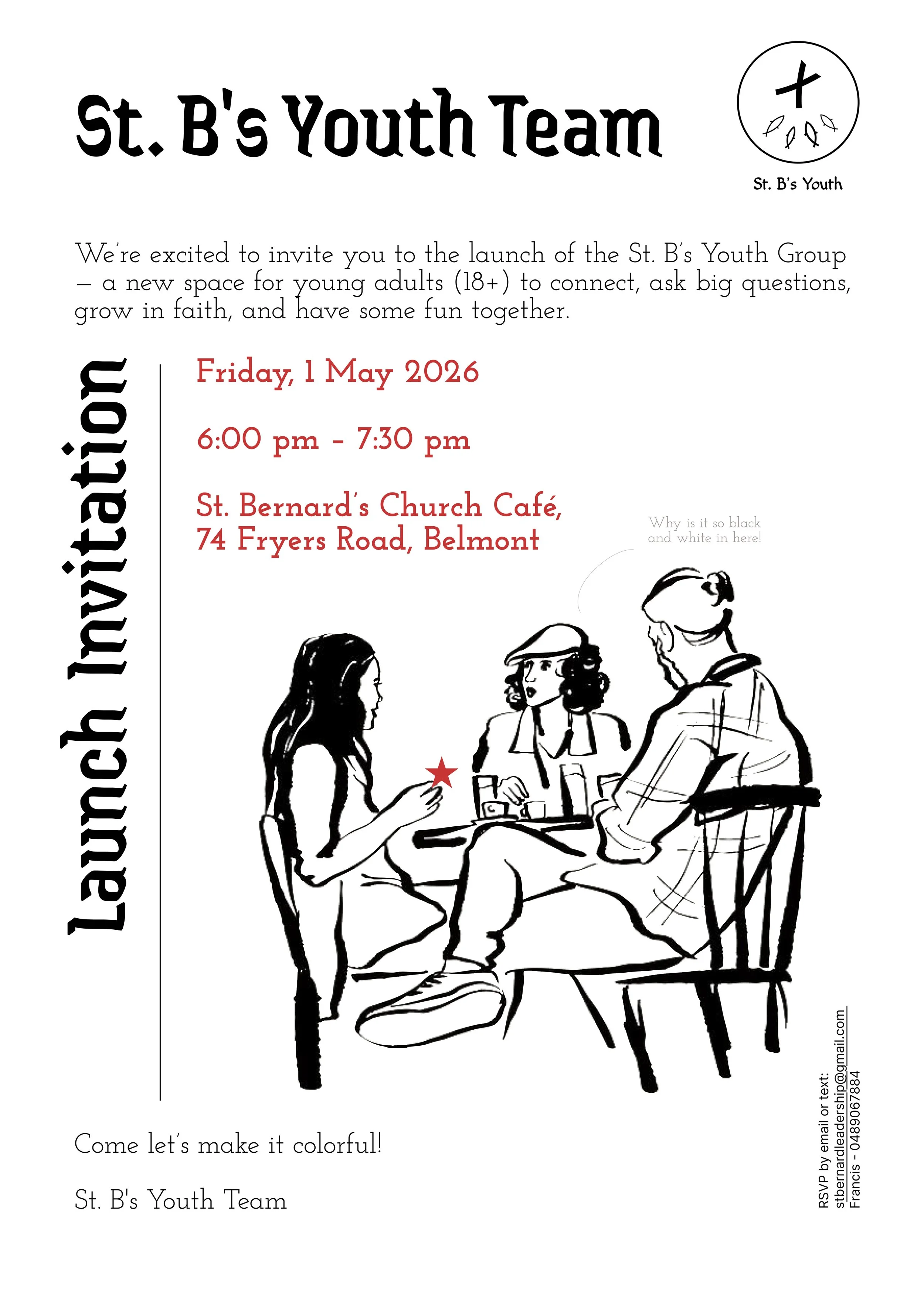 The Parish Youth Group will be holding a sausage sizzle following the 5:00pm Mass on 11 April and after the 10:30am Mass on 12 April. The group would love to meet more members of our parish community, so please come along, enjoy some food, and share in a little free entertainment and friendly conversation.